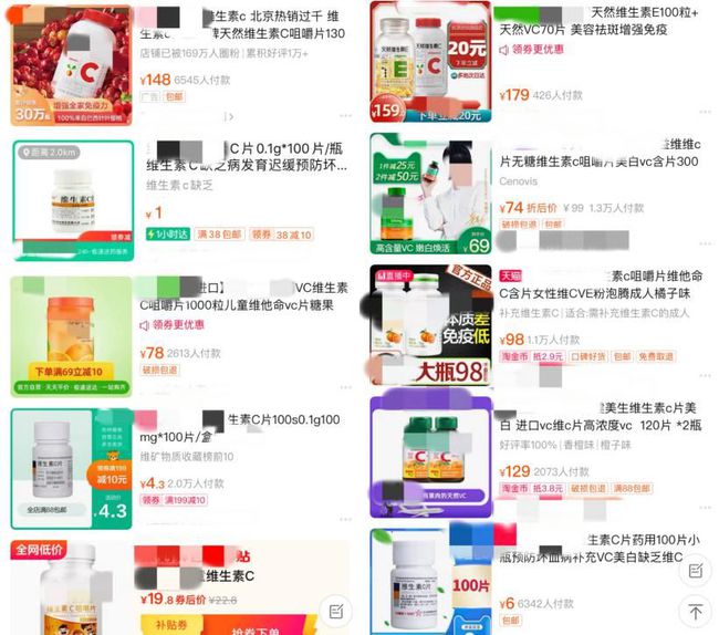 一瓶100片的維生素C保健品,如果每片含0.1g的維生素C,總共的維生素C成本也不會超過五毛錢。當然,產品里的輔料,產品的包裝、保存、銷售等,一層層加上去,真實的成本也不會高到哪里去。因此,維C的定價才會出現這樣的巨大波動。